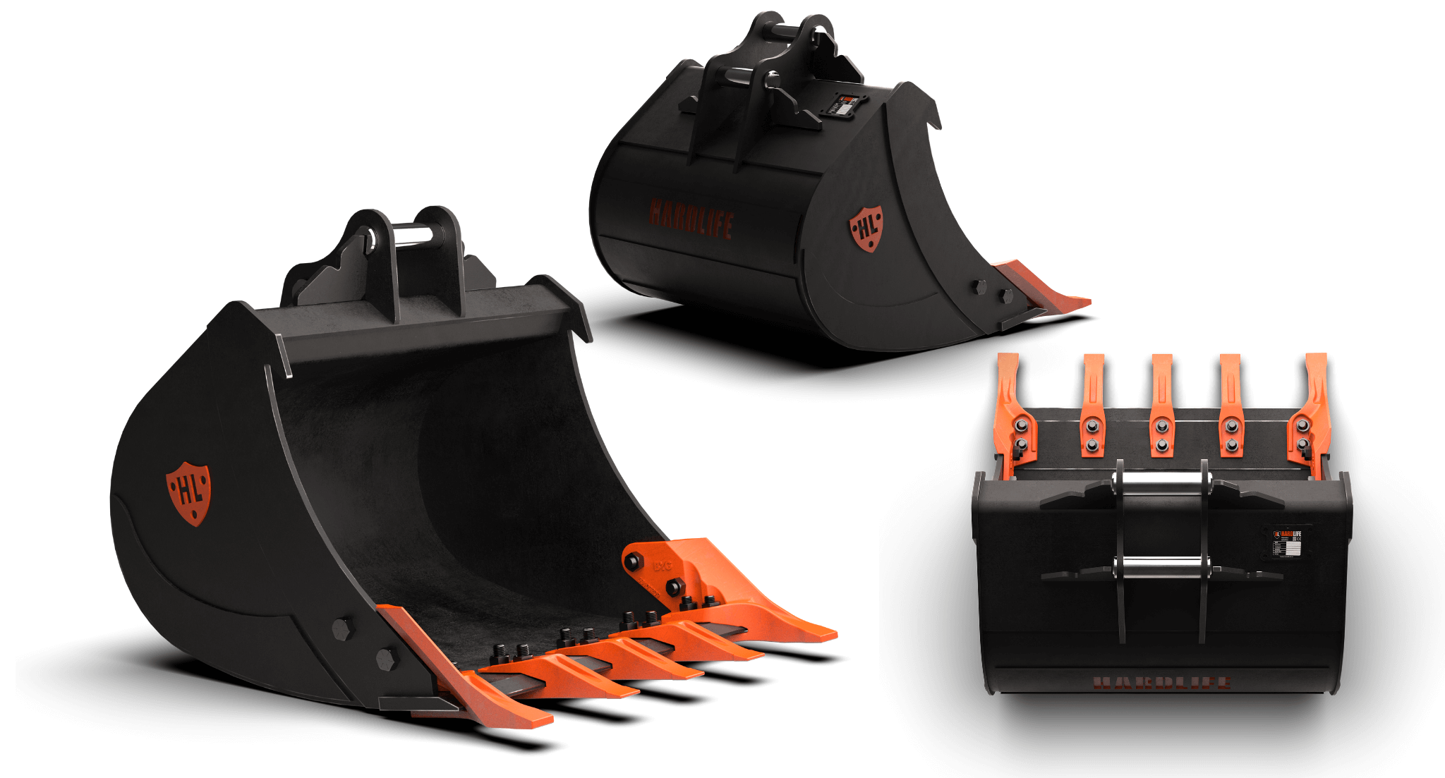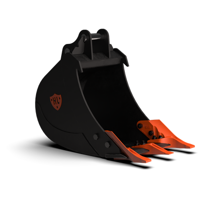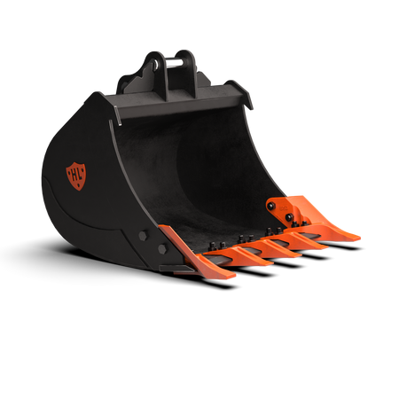 Our digging buckets are general purpose buckets built for everyday use. From narrow trenching buckets to larger bulk buckets, all our digging buckets are fitted with an HB400 abrasion resistant (AR) cutting edge, thickened side edges and wear strips to protect and strengthen the bucket floor. Bolt-on teeth come as standard, whilst blades / bolt-on edges can also be fitted.