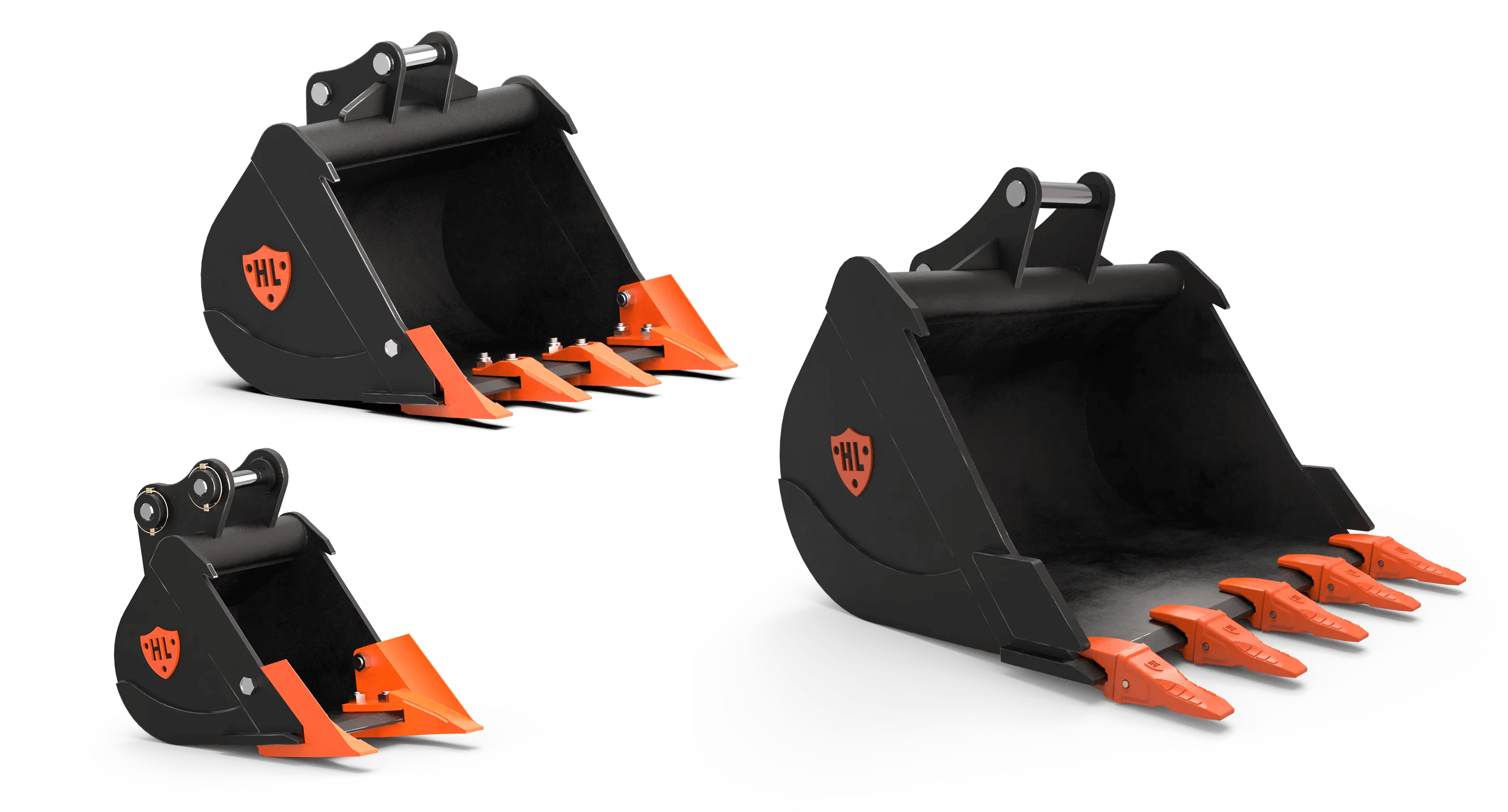 Our digging buckets are general purpose buckets built for everyday use. From narrow trenching buckets to larger bulk buckets, all our digging buckets are fitted with an HB400 abrasion resistant (AR) cutting edge, thickened side edges and wear strips to protect and strengthen the bucket floor. Bolt-on teeth come as standard, whilst blades / bolt-on edges can also be fitted.